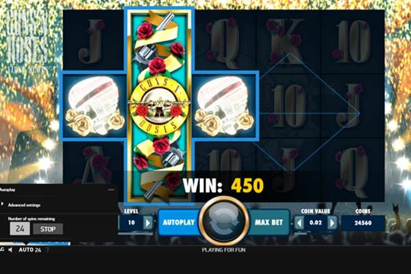 - Once you’ve selected your bet amount and pressed spin: you’ll be looking for some of the most iconic Guns N’ Roses symbols to roll in on a payline. The biggest pay symbols are the guitar picks and three of the band members: Axl Rose, Slash, and Duff McKagan. With these high-end symbols, the lowest return is on three of either of the guitar picks at 15, going all the way up to 750 when five Axl Roses come in.